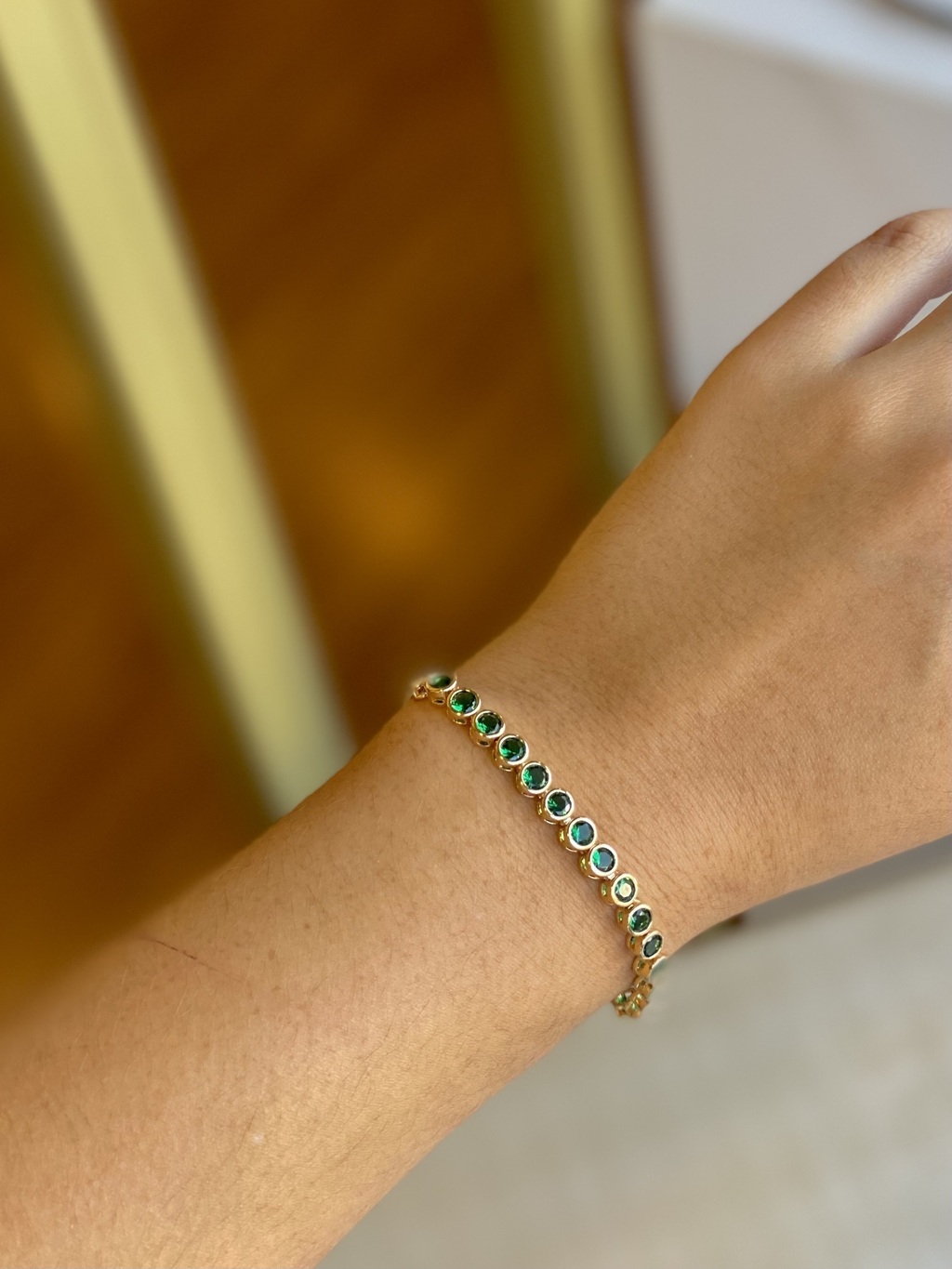 Pulseira folheado modelo de Regulagem ajustável ao pulso, com Pedrarias Redonda.